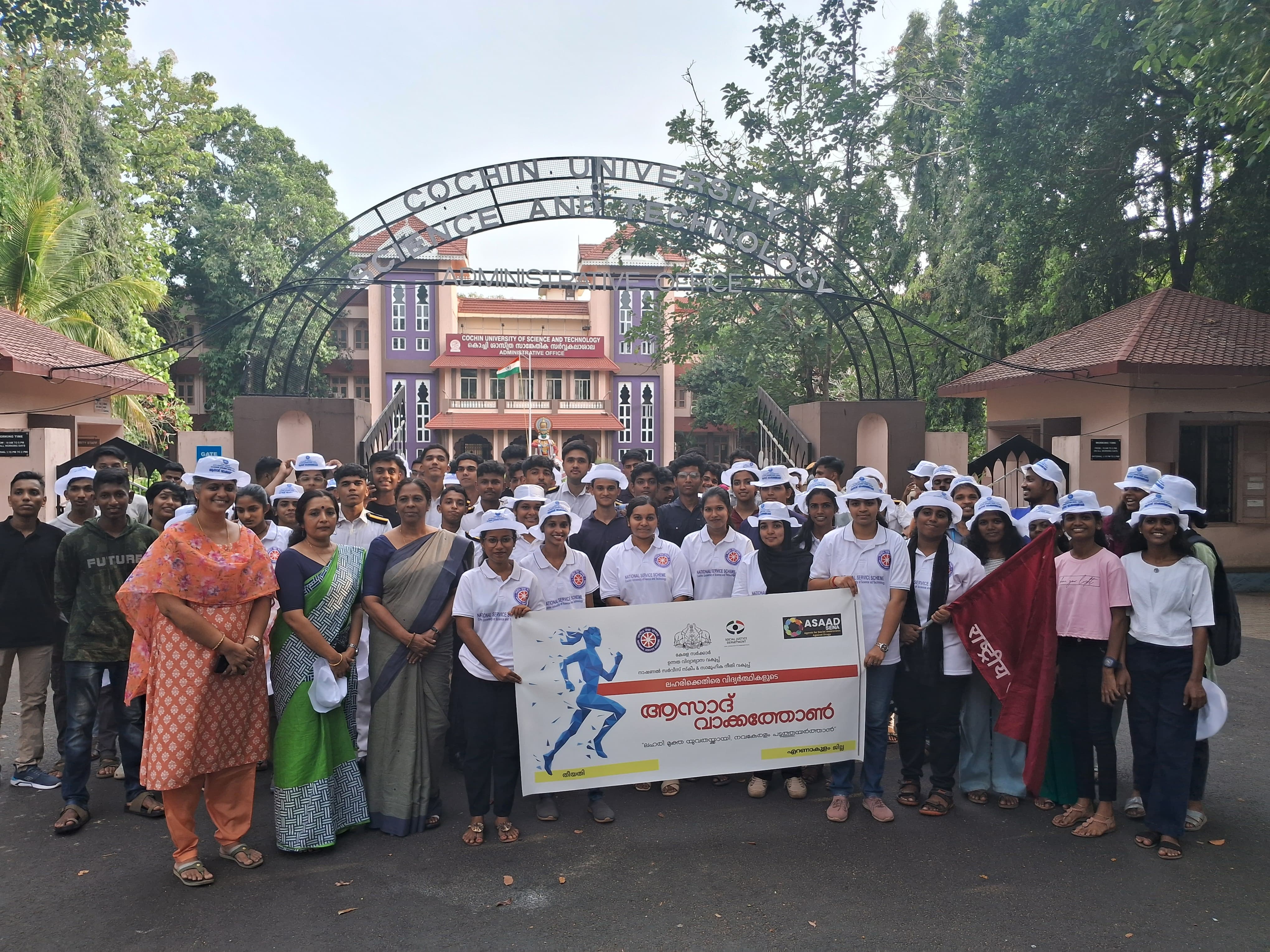 Asad Walkathon against drug was jointly organized by Kerala state higher education ministry and NSS. 60 volunteers from KMSME participated in the walkathon. Stage off of walkathon was done by Registrar Dr. Meera V. in front of Administrative block of CUSAT and was presided by NSS Coordinator Dr. Remya Ramachandran. Program officers of different units Vishnu S Kumar and Aparna was part of the walkathon.